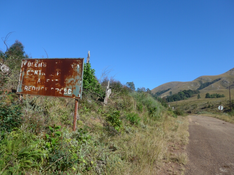 Der Fluss an dem wir entlang fahren, ist aber noch nicht der ‚Blyde‘! Ein Schild an einer kleinen Flussbrücke ohne Geländer in schönster Felsenlandschaft, zu der von der Teerstraße ein unbefestigter steiniger Weg hinunterführt, trägt die Aufschrift ‚Treur‘ (afrikanns: Trauer) – im Flussbett liegen auch lauter schwarze Steinblöcke, das Wasser scheint an manchen Stellen schwarz zu sein – sorgt zunächst für etwas Verwirrung. Ist das nun der Blyde Canyon, oder was? Ein Blick auf die Karte zeigt, dass der Blyde weiter westlich fließt.
