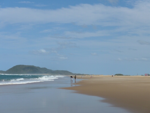 Also ganz einfach am Strand entlang. auf der Karte ist die Flussmündung drauf, schön breit, nicht zu übersehen. Da kommt man bestimmt nicht zu Fuß ohne Brücke drüber, der Strand ist unterbrochen, weshalb man auch nicht zu Fuß nach Maphelane, einem weiteren Naturreservat mit Wildernesstrails, durchkommt. Maphelane ist auf dem Landweg von hier nur mit ca. 80km (!) Umweg zu erreichen, über eine lange Sandpiste. Soweit die Infos der Karte.