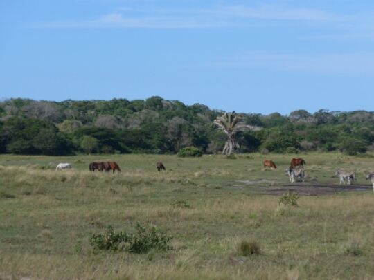 Das mit dem bewaffneten Guide war auch ein bisschen ein Missverständnis: Den braucht man nicht hier, sondern wenn man mit dem Auto zum Cape Vidal fährt und auf dieser 33 km langen Autofahrstrecke – geht nicht anders, wegen der Tiere – aussteigen möchte, um bestimmte Trails zu begehen.