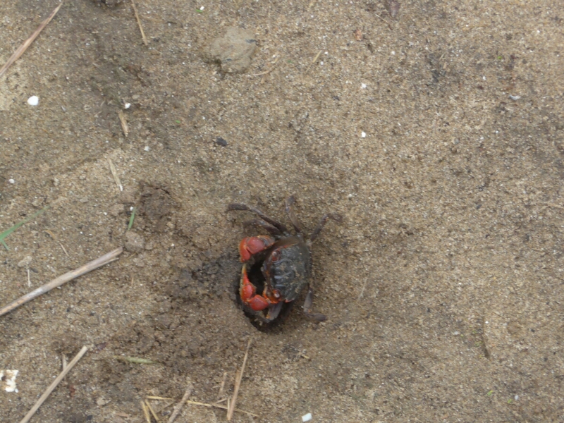 Unterwegs endlich einen neugierigen Krebs erwischt, der nicht gleich wieder in seinem Loch verschwindet.