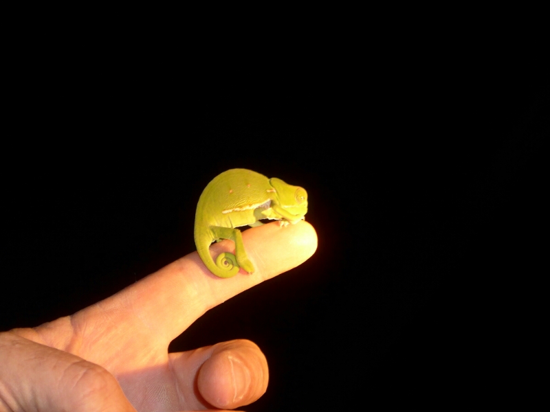 Ein Stopp: Der Ranger steigt aus und holt ein kleines grünes Etwas von einem Blatt, kaum zu sehen, erst als es auf dem Finger sitzt: