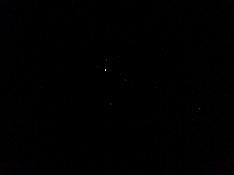 Ein Foto hab ich versucht, die hellsten Sterne sind zu sehen (erstaunlich, was diese kleine Kamera leistet):