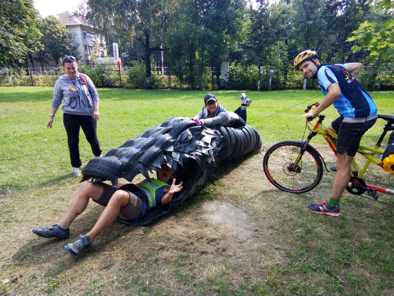 Der Gast mit der solarbestückten Marslandefähre wird samt seines Gefährtes inspiziert und von den netten Marsmädchen (des Veloclubs „Velo-Lady Tutschkovo“ um Julia Gusakova) ausgiebigst ausgefragt. Was die alles wissen wollten! Aber das ist kein Wunder, denn so oft kommt auch niemand mit so einem selbstbetriebenen Gefährt von so weit her.